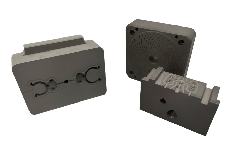 Being able to print multiple cavities and cores at once reduces the time and cost required to produce these molds. But again, this isn't the only benefit of Spectrum using the Mantle. The Mantle prints with an H13 paste, which is the current workhorse steel in injection molding, and utilizes a sintering and machining process. The printing process allows us to print with tighter tolerances and better textures opposed to the traditional 3D printing lines. We're now comfortably holding tolerances around 2,000th of an inch per linear inch of the part and are continuing to improve on this as we learn more.